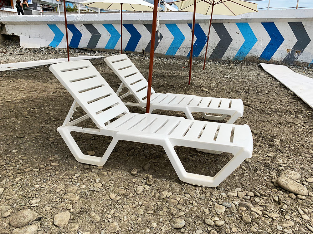 Универсальный шезлонг с тщательно продуманным дизайном, который подходит для размещения как любом виде покрытия пляжей. Устойчивы и не ломки, не проваливаются и не деформируются от неровной поверхности. На пляжах с покрытием пляжа галькой, шезлонги показали себя устойчивыми и не изменяющими своего первозданного вида. На песчаных пляжах они не проваливаются в песок и не застревают в нем.